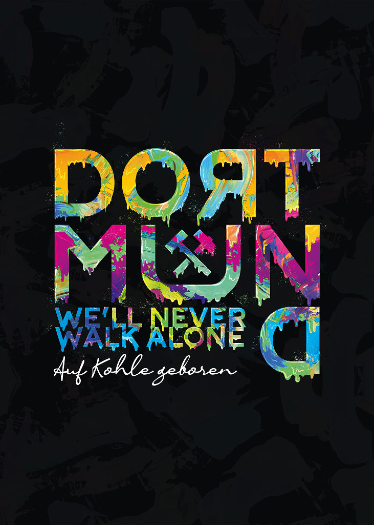 Dortmund Typo in Farbe zeigt ein ausdrucksstarkes Dortmund Typografie Poster mit urbaner Farbstruktur auf schwarzem Hintergrund. Moderne Stadtkunst mit klarer Typografie – erhältlich als Poster, Leinwand oder Alu-Dibond für urbane Räume.