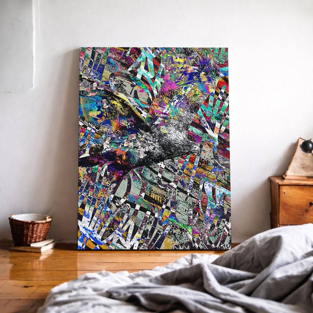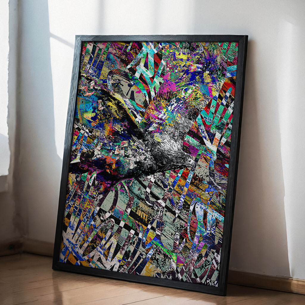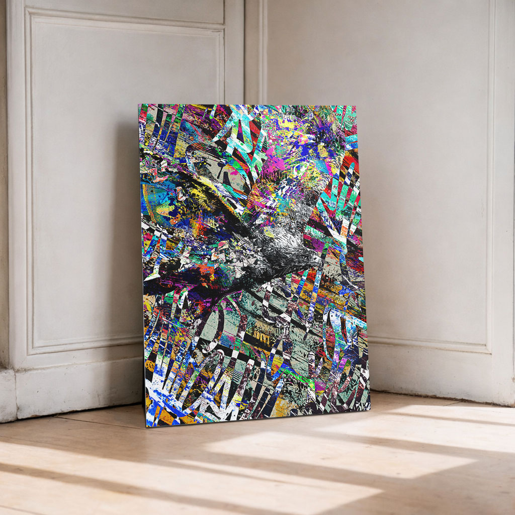 Urban Flight zeigt einen dynamischen Urban Art Adler im expressiven Graffiti Stil. Das Motiv steht für Freiheit, Bewegung und urbane Energie – moderne Tierkunst als Poster, Leinwand oder Alu-Dibond für charakterstarke Räume.