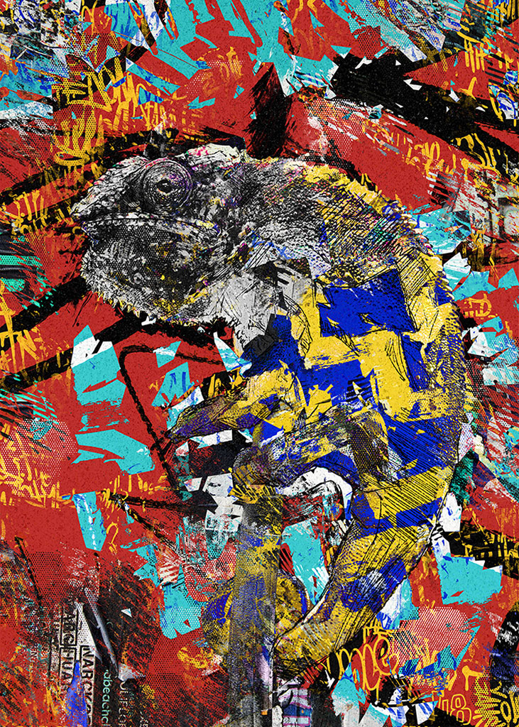 Urban Adaptation – Urban Art Chamäleon Poster im Graffiti Stil