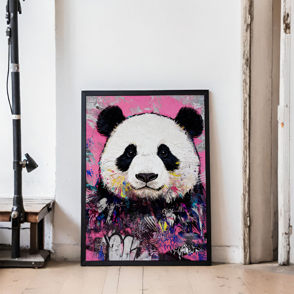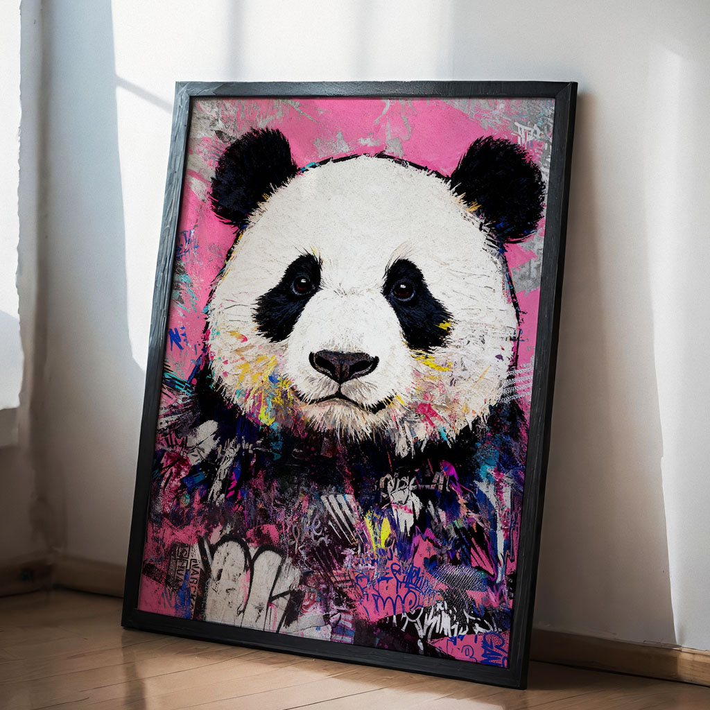 Calm in Chaos – Urban Art Panda Poster im Graffiti Stil
