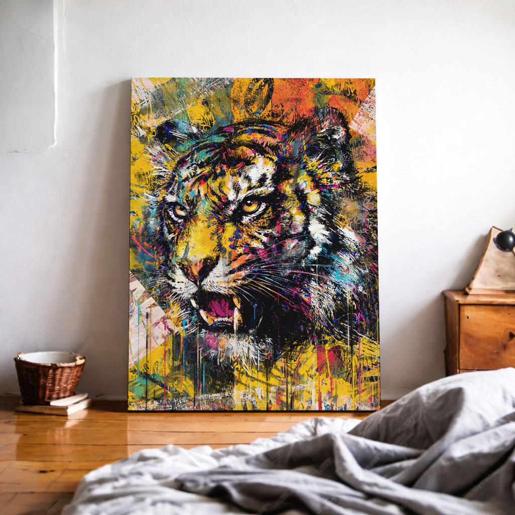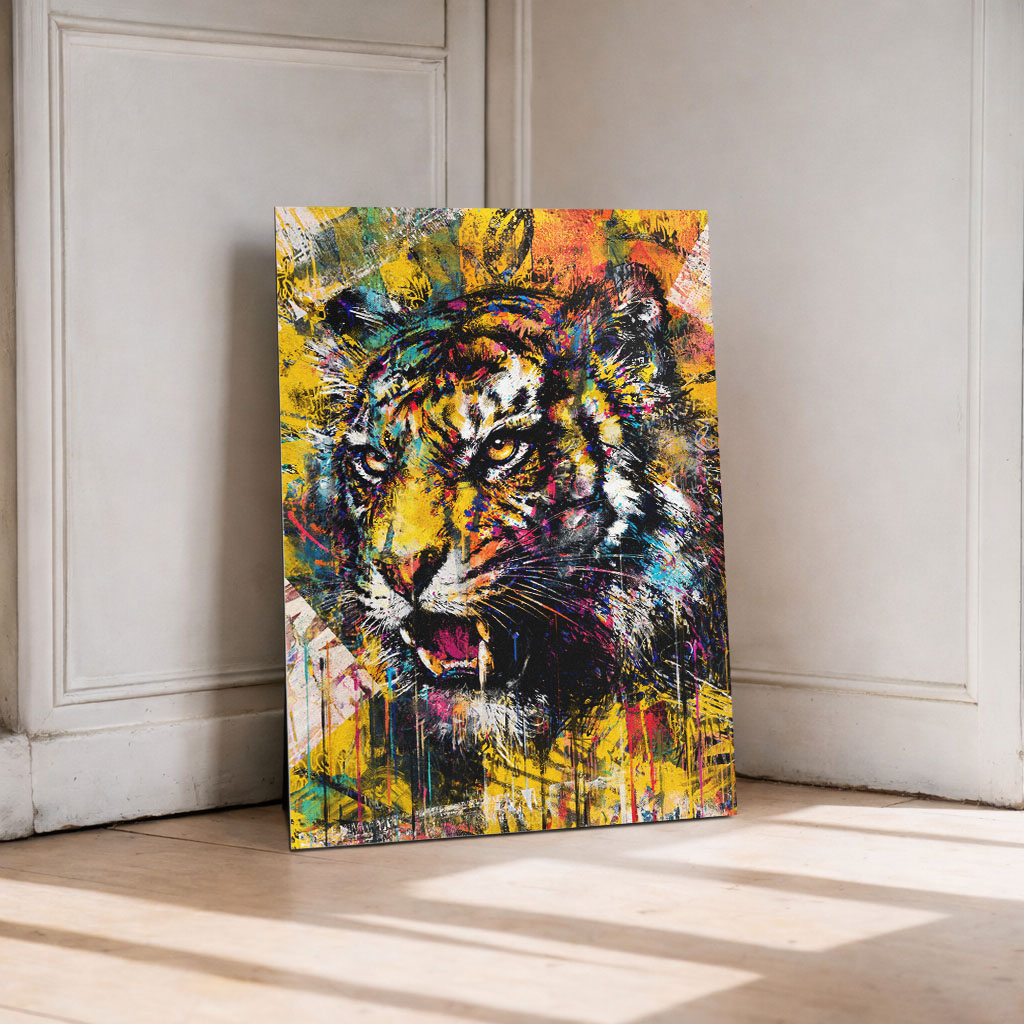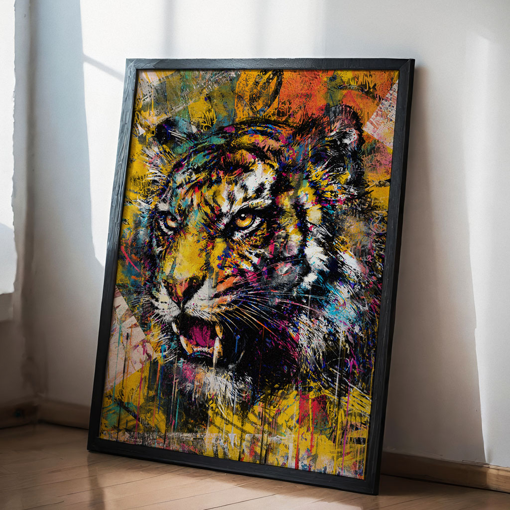Urban Roar zeigt einen kraftvollen Urban Art Tiger im expressiven Graffiti Stil. Das Motiv steht für Stärke, Dominanz und rohe Energie und verbindet wilde Präsenz mit urbaner Street Art – erhältlich als Poster, Leinwand oder Alu-Dibond für markante Räume.